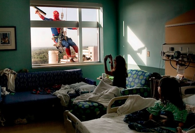Era un día normal en la vida de Steve Oszaniec, un chico de 23 años que trabajaba como limpia cristales en un hospital infantil. Estaba en plena tarea cuando un chico se le acercó y le preguntó ”¿eres Spiderman?” Una pregunta que le solían hacer siempre que los/as pequeños/as le veían colgado del edificio.