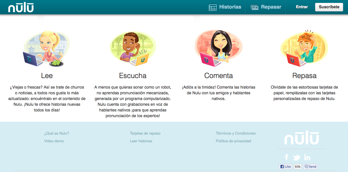 NULU, plataforma para lanzarnos por fin a aprender inglés de una manera atractiva. Una vez que nos hemos resgistrado nos encontramos con diferentes herramientas para acercarnos a la lengua anglosajona: