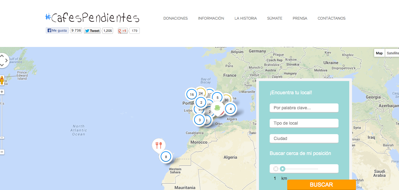 Si tienes un negocio y quieres sumarte a la iniciativa entra en http://cafespendientes.es/ y podrás ver el mapa con los que ya participan, descargar el distintivo o simplemente decir BRAVO!