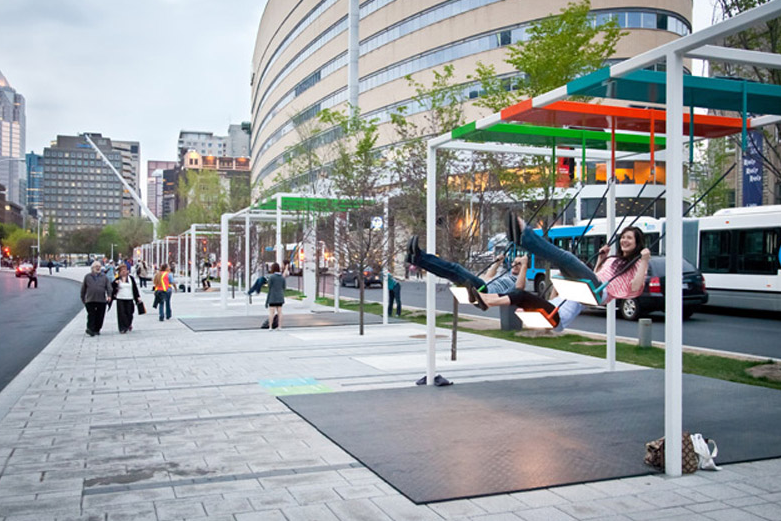 Mucha envidia sana tenemos cuando descubrimos el proyecto 21 Balançoires. Proyecto artístico montado en las calles de Montreal, Canadá. Esta instalación pública se compone por 21 columpios, cada uno de ellos distinguido por un código de color y un sonido único. Cuando una persona usa el columpio diferentes notas musicales comienzan a sonar de acuerdo al ritmo del vaivén, la gracia de todo esto consiste en que si muchas personas balancean simultáneamente podrán crear una melodía en conjunto.